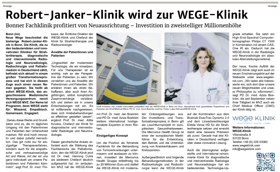 Die WEGE Klinik ist in der Presse erschienen. Nachfolgend können Sie die Ausschnitte lesen:
